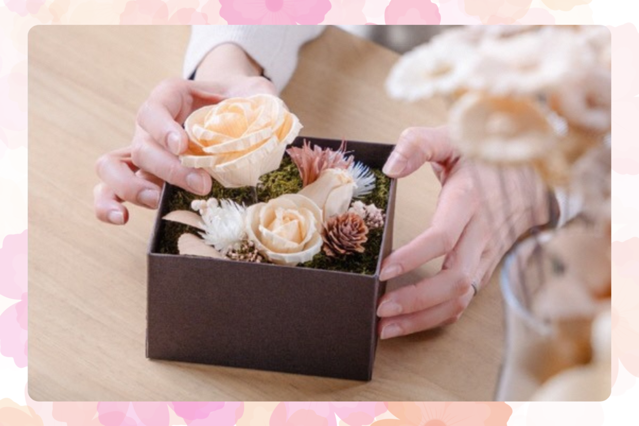 木のお花「MOKUKA」でBOXアレンジメント